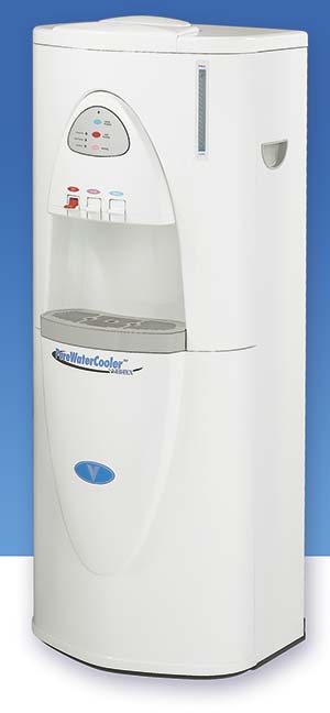 A deluxe 3-temperature, hot, room and cold bottle-less water cooler uses the existing water source to make a continuous supply of clean, great tasting water for offices or factories of up to 50 people. The reheat function raises the normal hot water temperature by 15º F for steaming hot tea or soup.